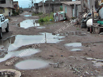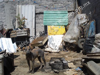 Esta es la Calle Ciruelos, en Chimalhuacán, Estado de México, justo a lado del tiradero del Bordo de Xochiaca en donde corren las aguas negras del Estado. Aquí vive Magda con 40 perros y 10 gatos. ANDES ANIMALES DESAMPARADOS llegó a brindarle ayuda a Magda y sus animales por un vecino que conmovido por la situación nos hizo un llamado de ayuda; todo esto para evitar que el antirrábico se llevará a sus animales.